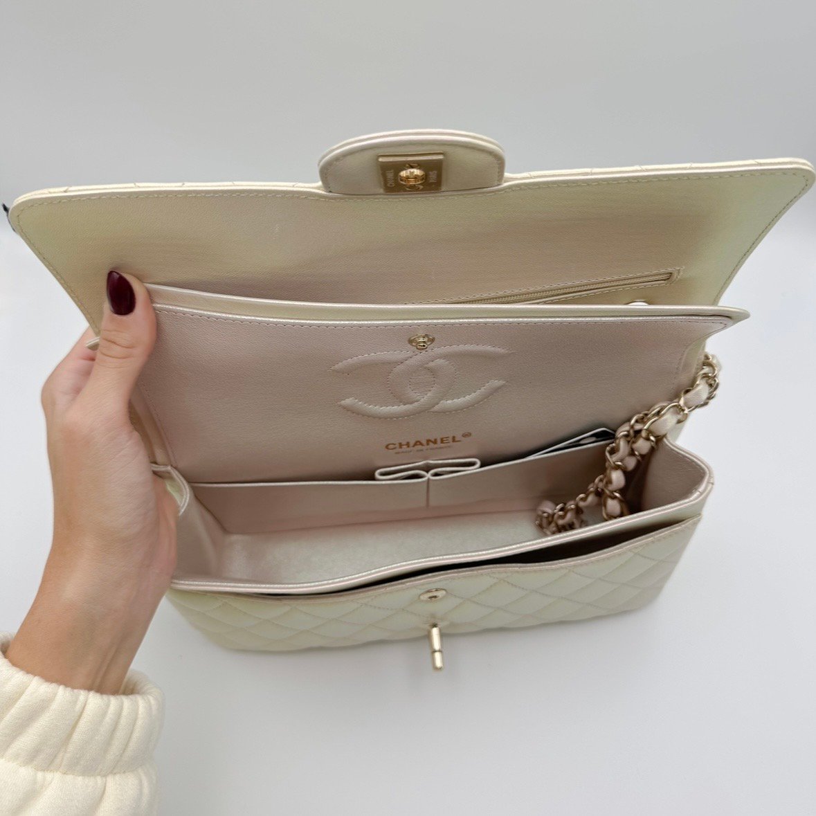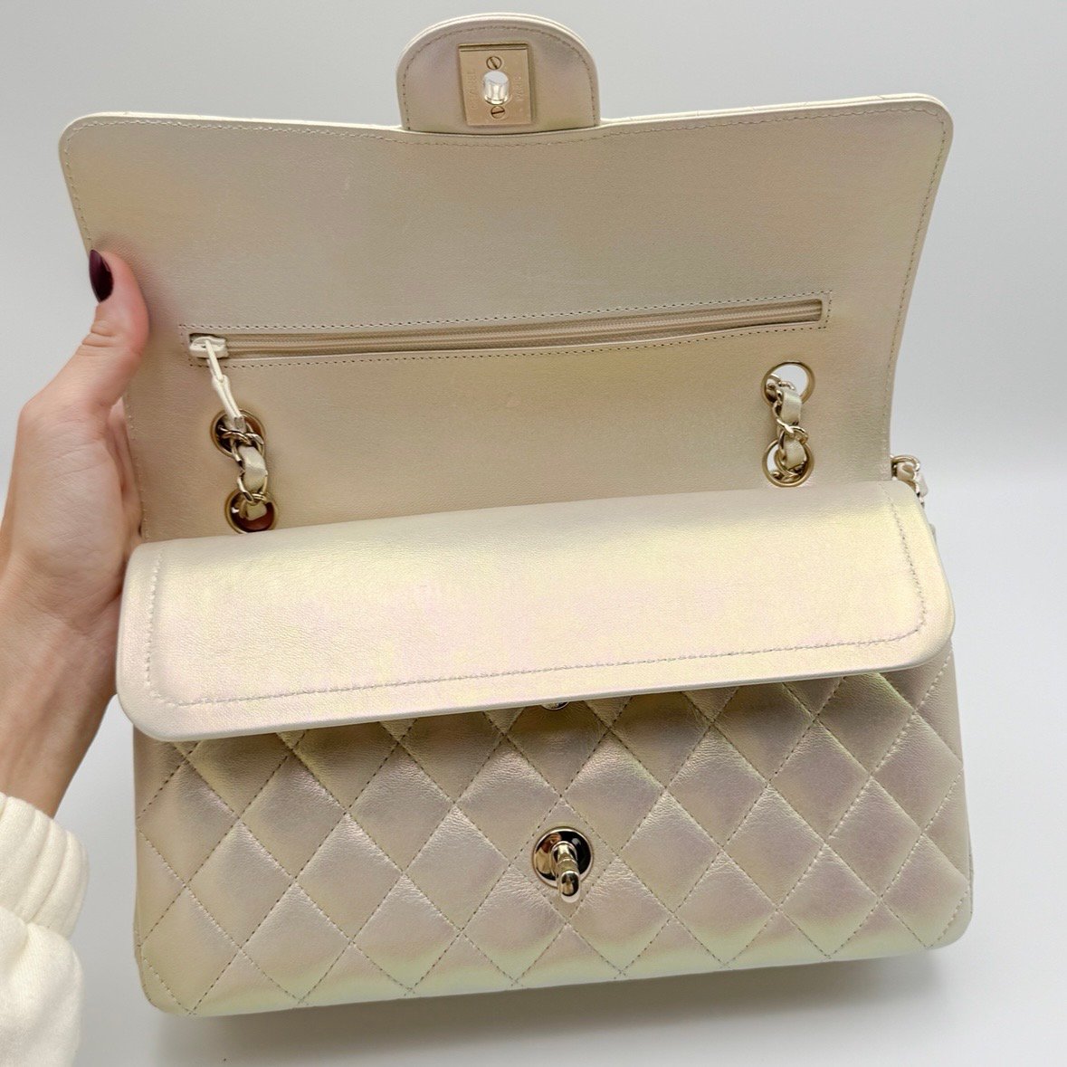 Materiale: pelle liscia bianco perlato