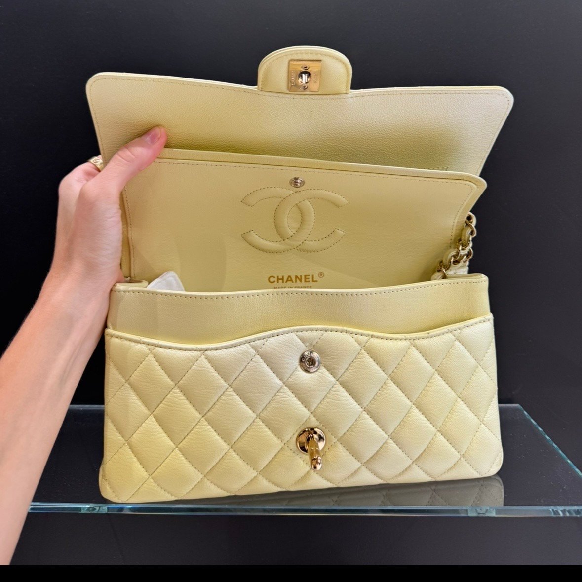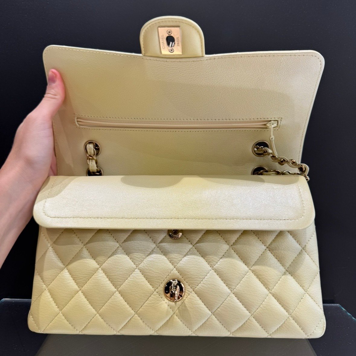 Materiale: pelle liscia giallo perlato